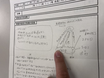 まずは日誌の作成。生徒記入欄を見ながら学習すべき内容を確認していました。