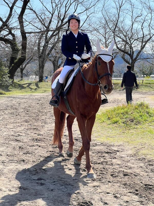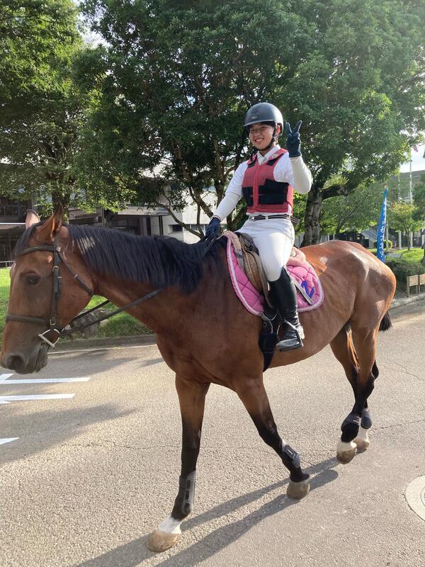 今回の全日本高等学校馬術大会で、1回戦から敗退してしまい目標だった"全国大会入賞"を達成することができませんでしたが、走行した3人だけでなく、全国大会に参加したメンバー全員がサポートし合うなど、チーム一丸となって全力を出しきれた大会だったと思います。また、普段からご指導してくださった顧問の先生方をはじめ、応援してくださった保護者の方や学校の先生方、地域の方々に感謝の気持ちを忘れず、後輩たちに来年こそ優勝してもらえるように、部活動を引退しても知識や技術など私たち3 年生に部としてできることを最後までやり遂げて行きたいです。