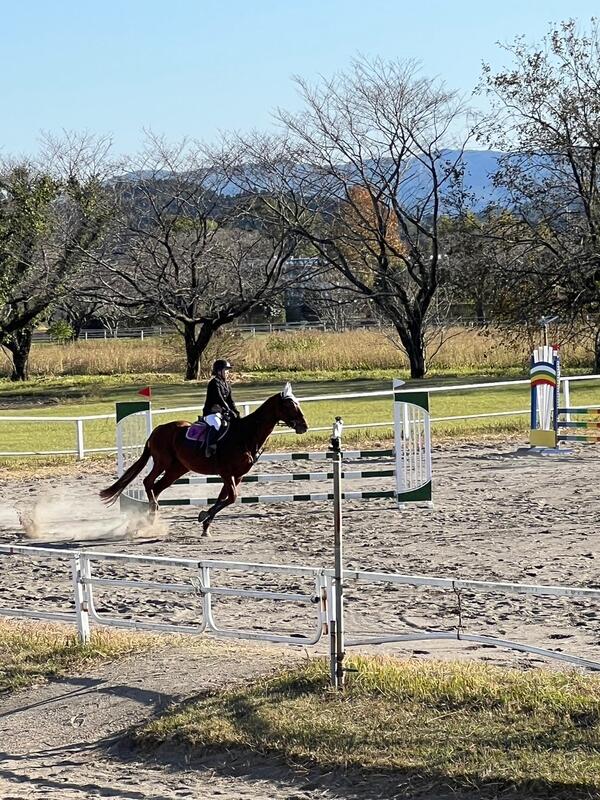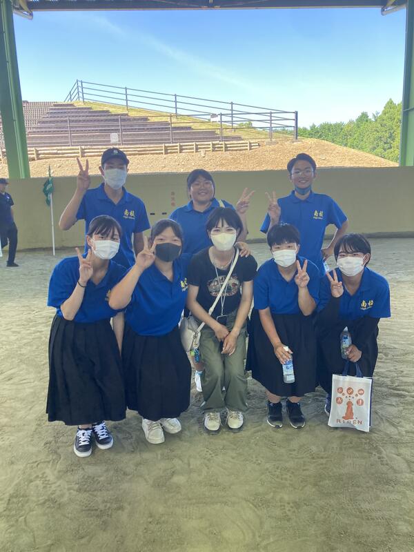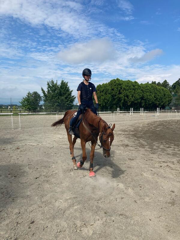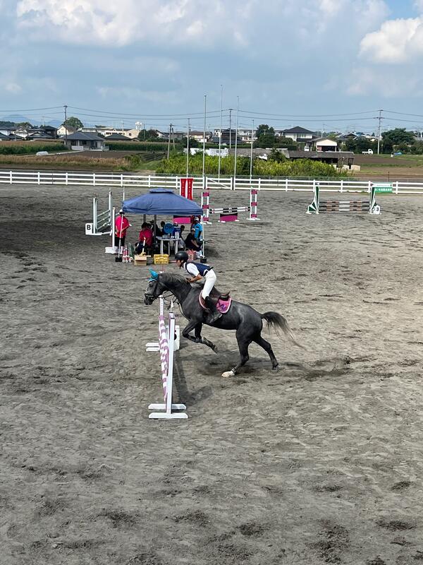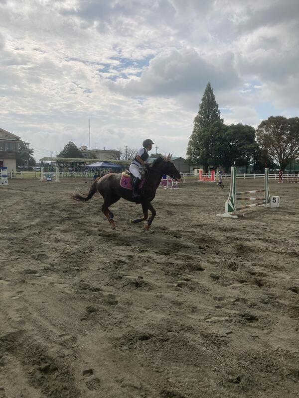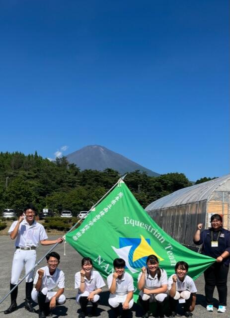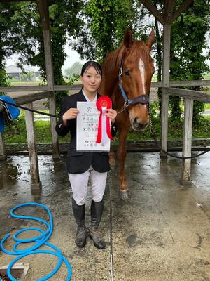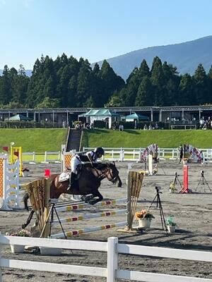 今回の全国大会では、たくさんのことを学べたり、自分の課題を見つけたりなど様々な経験をすることができました。初日に静岡に着いたとき、初めて会場を見て正直とても緊張しました。でも、大会に出てくる馬達の練習や走行を見て、軽く乗ったり、制御の仕方に工夫が必要だったりでどう乗れば乗りこなせるかなど考えているうちにその緊張がいつの間にか解けて、「あの馬乗ってみたい!」「あの乗り方今後に活かしたい!」などと、見ているだけでもたくさん学べてとても楽しむことができました。応援していただいた学校や保護者、地域の方々の皆さま、本当にありがとうございました。この経験を活かし、今後もっと技術を伸ばして来年はチームみんなで入賞したいと思います!!
