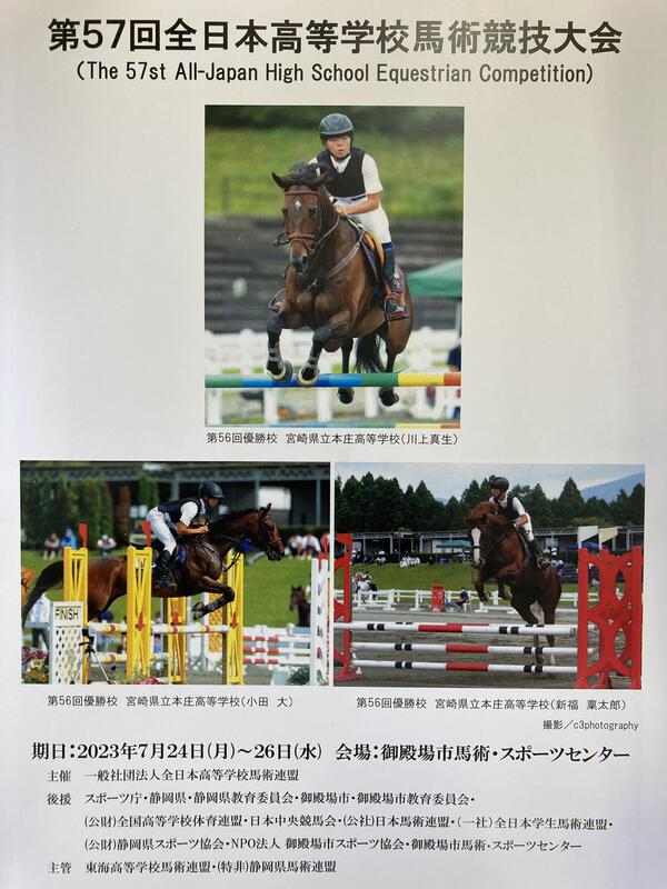 7月24日より3日間にわたり静岡県御殿場市馬術・スポーツセンターにて行われた第57回全日本高等学校馬術競技大会に参加した選手の感想を掲載します。また、今大会に参加するにあたり、たくさんの方から応援をいただきました。本当にありがとうございました。