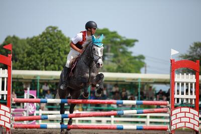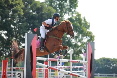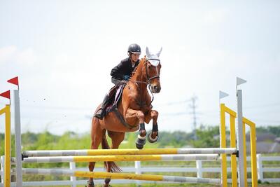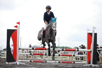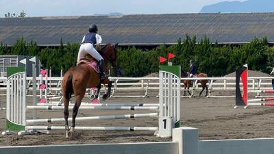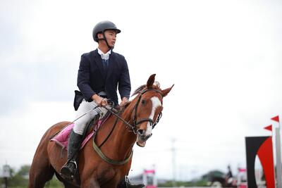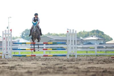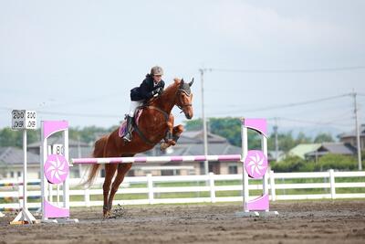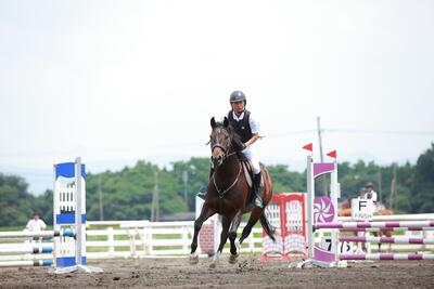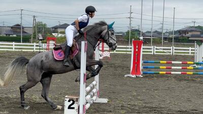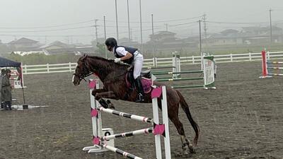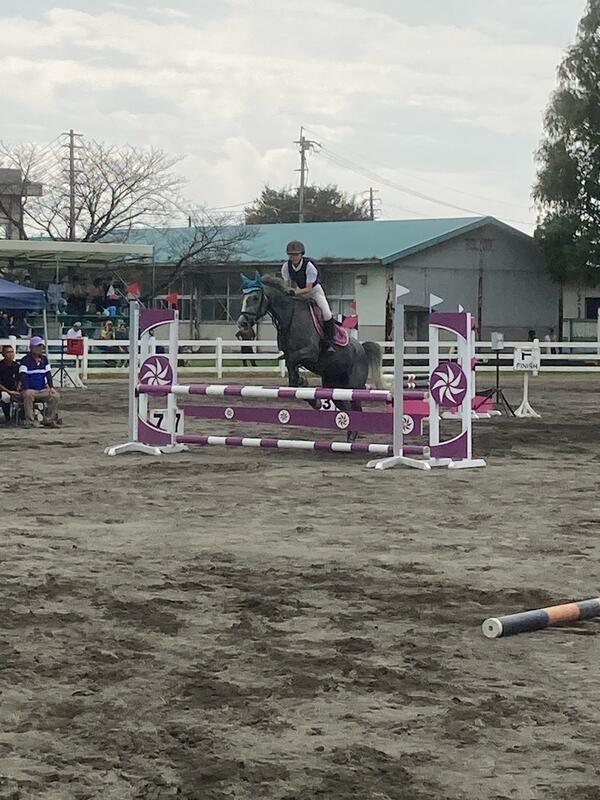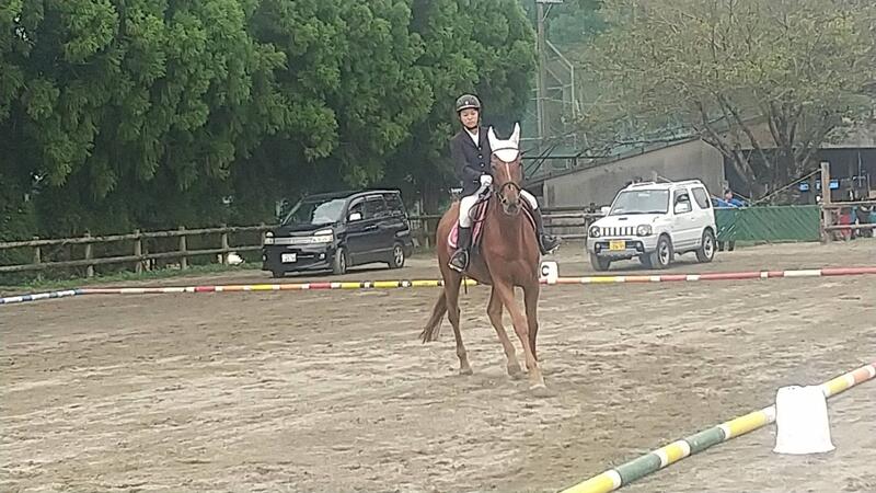 テイエムスピリタス号で初めての小障害飛越競技L級A(100cmクラス)を完走した2F平迫さん。よく頑張りました。