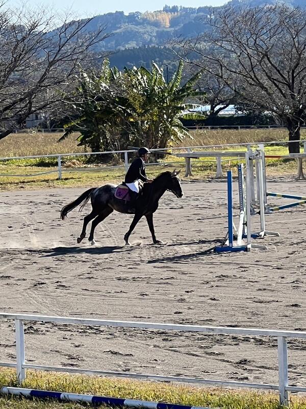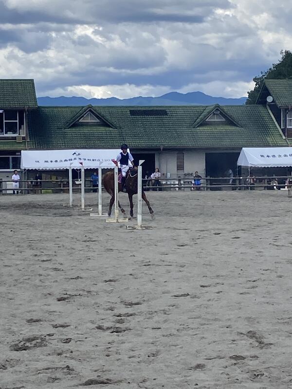 対戦校は熊本農業高校と愛知県の鳴海高校という学校で特に熊本農業高校には高校総体、九州地区予選、新人大会においてもあと一歩というところで負け続け、今回勝てるチャンスが大きかったんですがやはりあと一歩届きませんでした。ですがそれと裏腹に貴重な経験をさせて頂き来年の全国大会に希望が持てたと思います。今回僕が何より嬉しかったのが初めての貸与馬に挑戦することができ、減点0でゴールを切れたことです。自分が成長したと感じました。