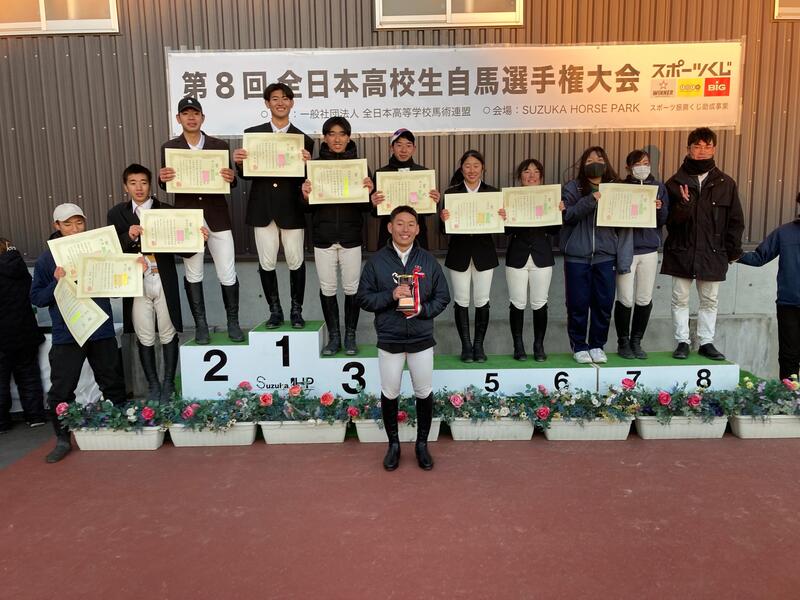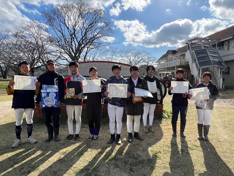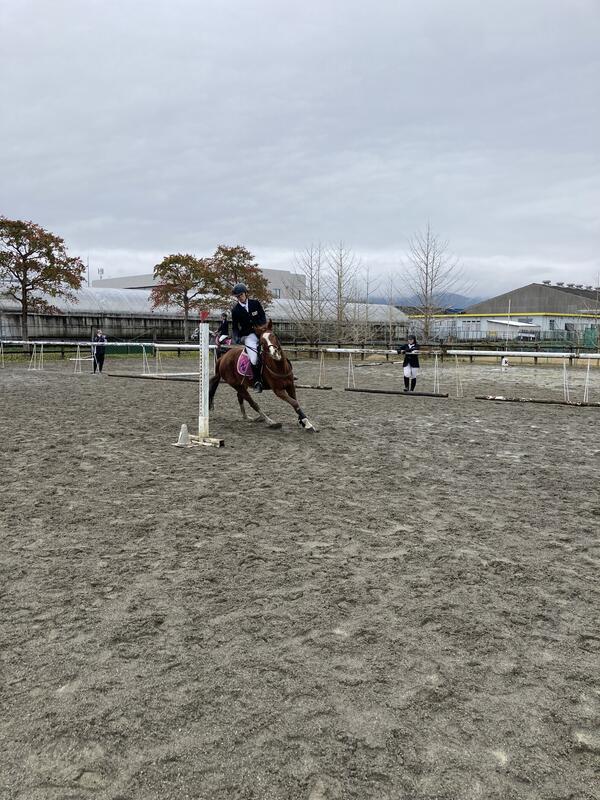 入賞選手のみならず、馬場馬術競技で4位となった1F永井さんは、馬のけがにより練習時間が限られていましたが、2、3年生を相手に上位に入りました。また、2F平迫さんは小障害飛越競技L級Bにおいて難易度のあるロイド号に騎乗しゴールを切るなど、それぞれの選手が競技に精一杯挑みました。