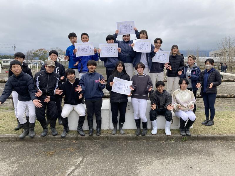 今年度本校馬術部は、全国大会(団体)での入賞や高校総体での総合優勝など輝かしい成績を残すことができました。これも3年生の努力の賜物です。