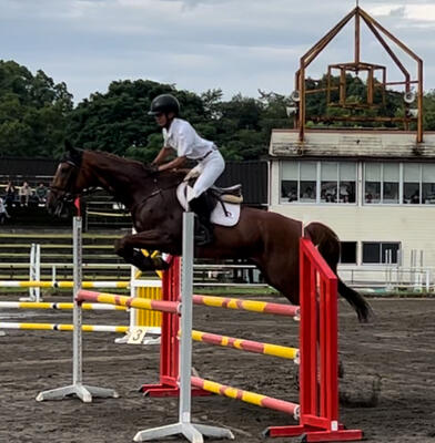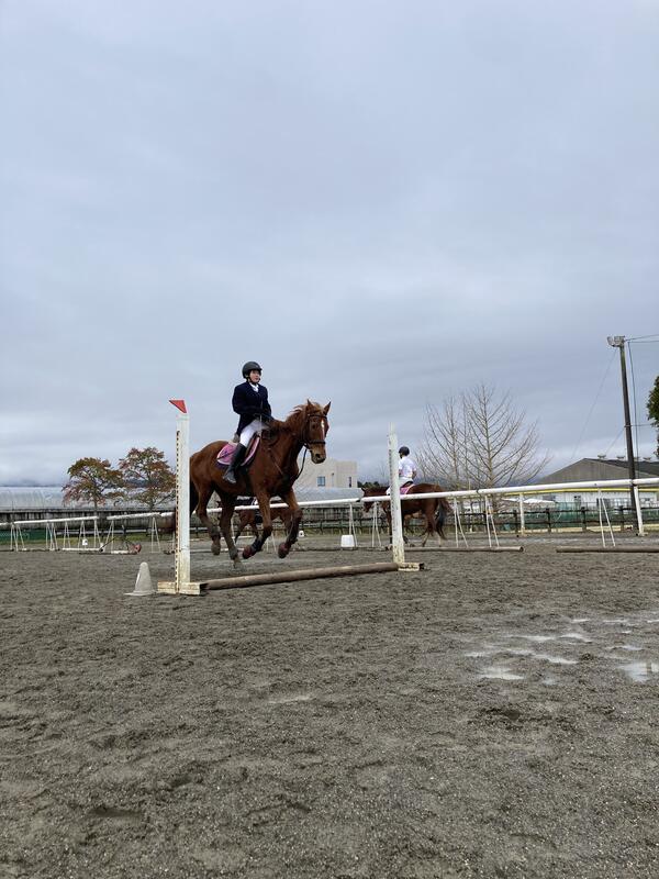 1年生の時はトシスプリング号で飛んだことのなかった100cmクラスを練習なしで飛ぶことができたり初めての総体でメンバーに入り先輩方と優勝を狙い競技を行うなうことや1年生の最後では今まで乗ったことのなかったピックウィジョン号に乗るなど貴重な体験をすることが出来ました。2年生では障害飛越競技だけでなく馬場馬術競技に挑戦したり全国大会(団体)や自馬選手権大会などの大きな大会に出場するなどの経験をすることが出来ました。