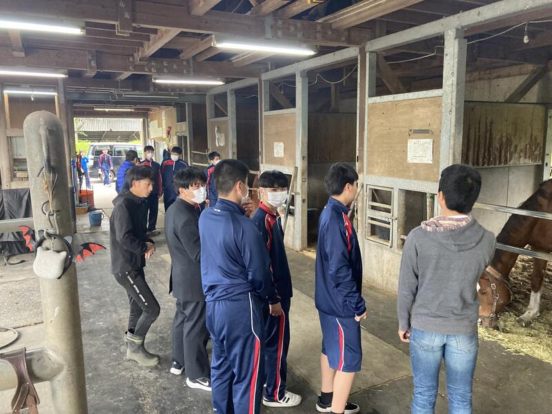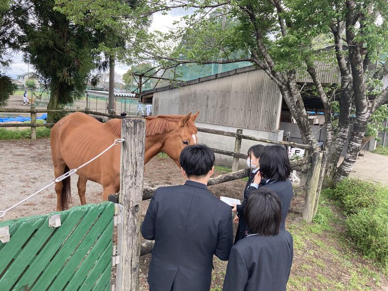 馬術部では、昨年から総合農業科の環境コースの依頼で木材由来の飼料について研究しています。「木を食べるのか?」と疑問もありましたが、しっかりと食べてくれています。この日は、東京から日本製紙の研究員の方が見に来られました。面白い取り組みですね!