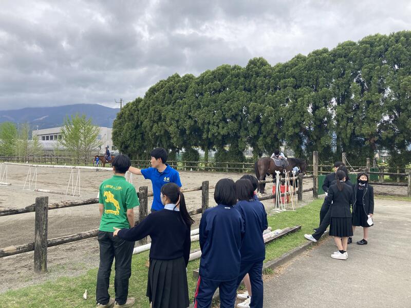部員たちが馬と触れ合いながら活動状況等をお話しさせていただきます。お気軽にお越しください。
