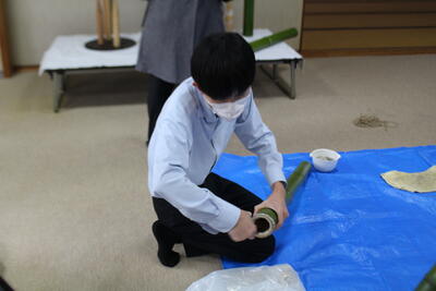 続いて、全体構成を外部講師の先生から教えていただき、竹を配置しますにっこり