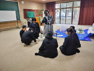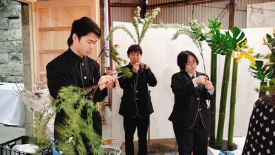 華道部6人で1つの作品を仕上げる、生徒たちにとって初の試みですニヒヒ