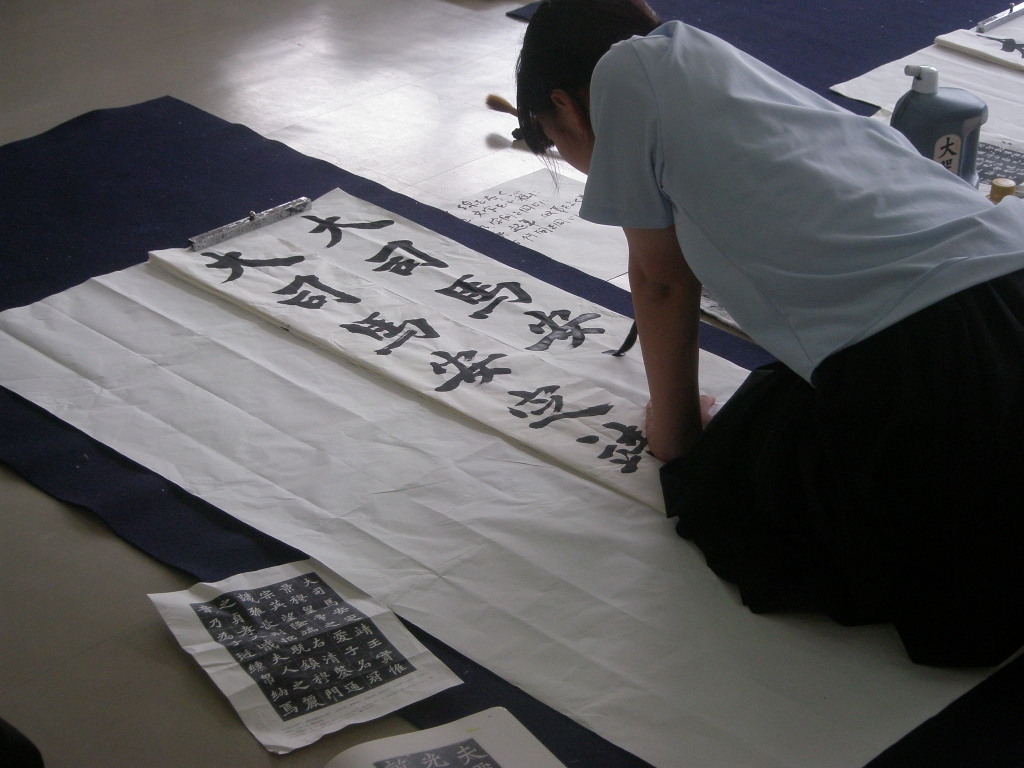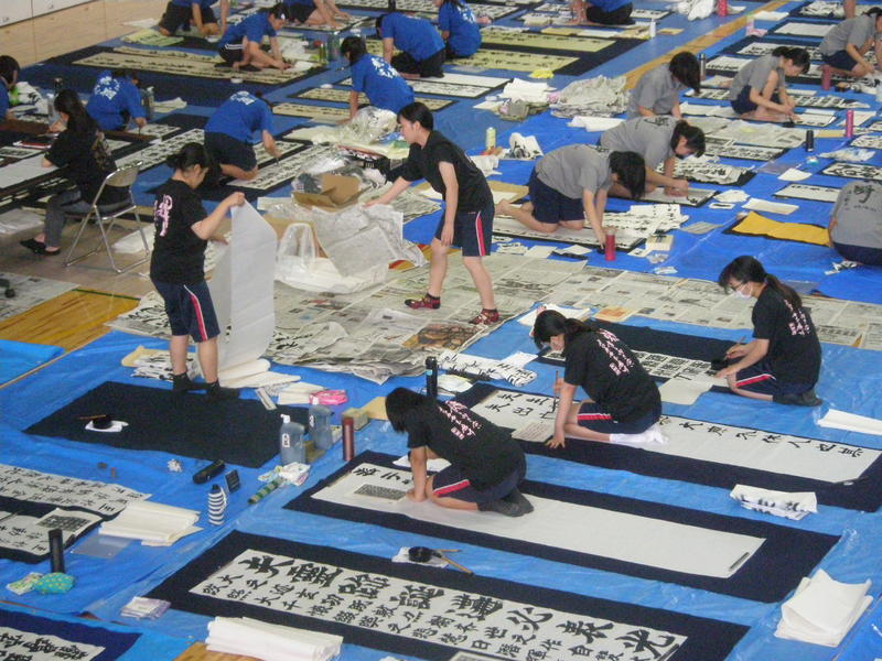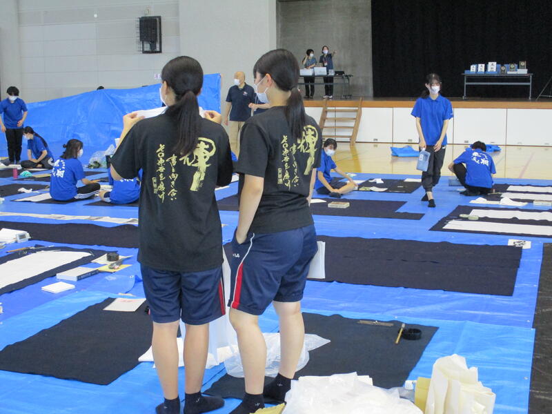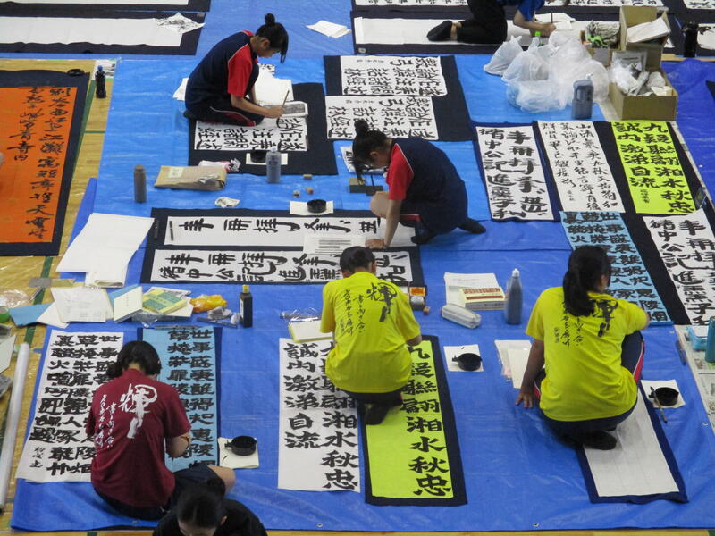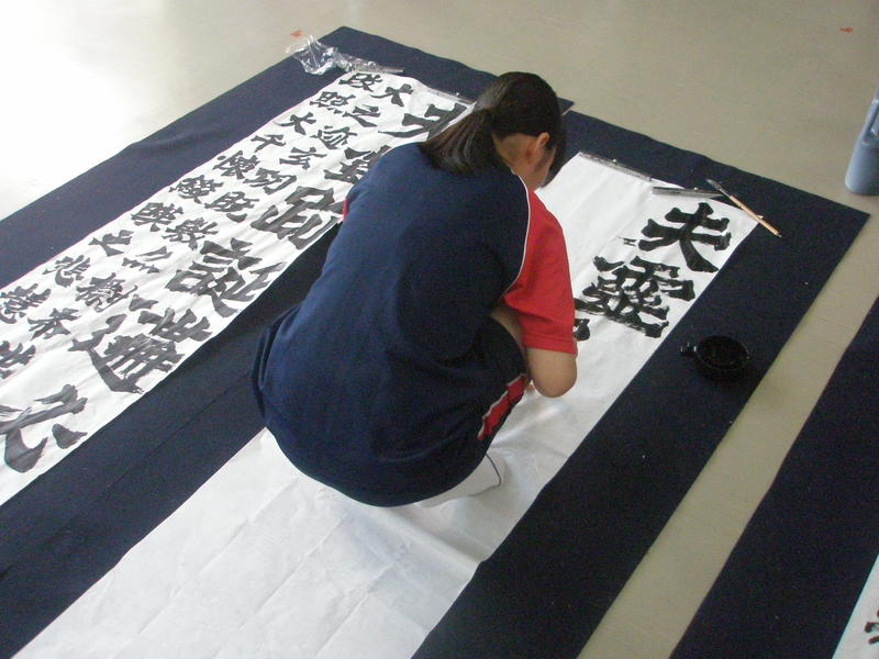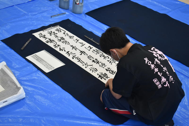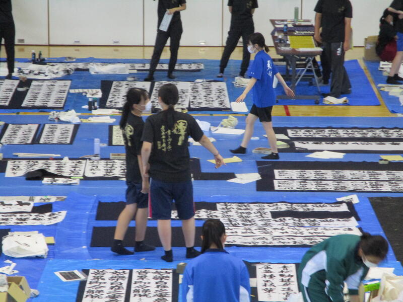 開会式終了後、揮毫開始です。制限時間2時間のうちに作品を仕上げなければならないとあって、会場内に書道部員の緊張が伝わってくる独特の雰囲気の中で作品に取り組んでいました。