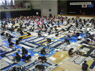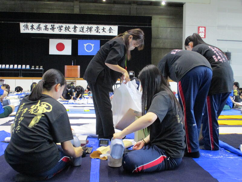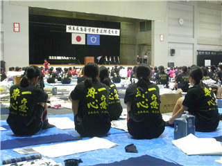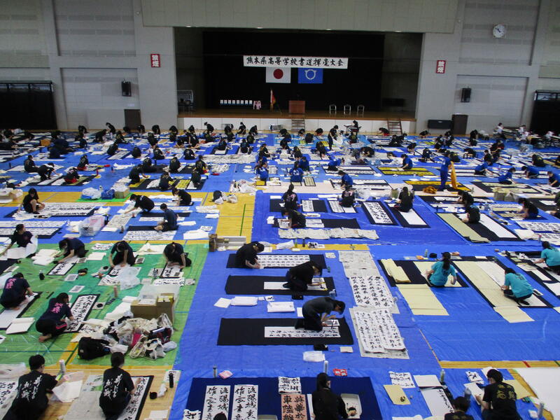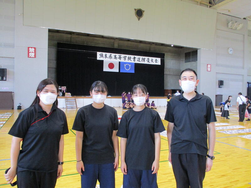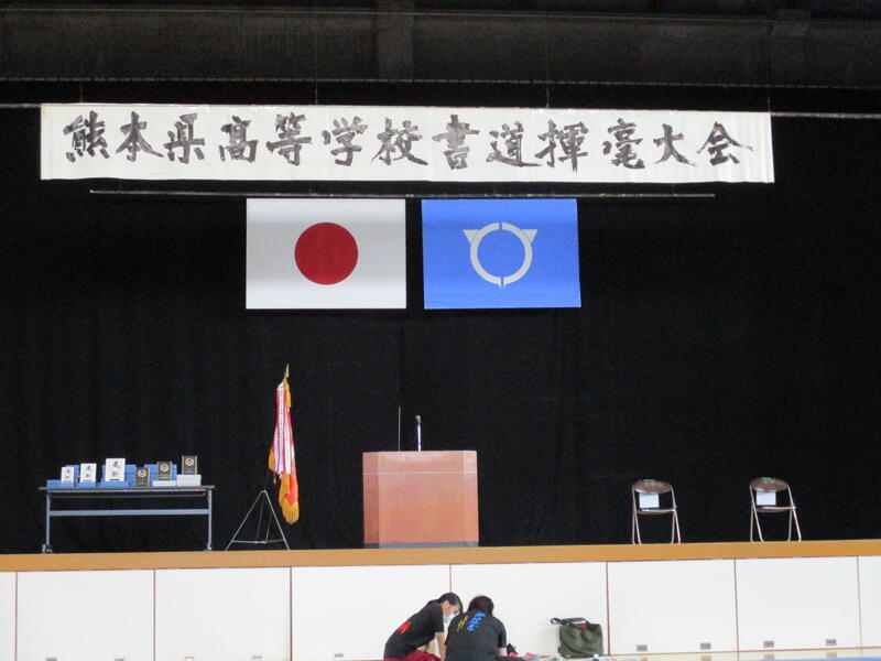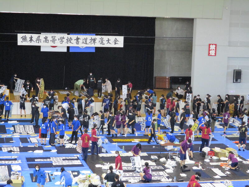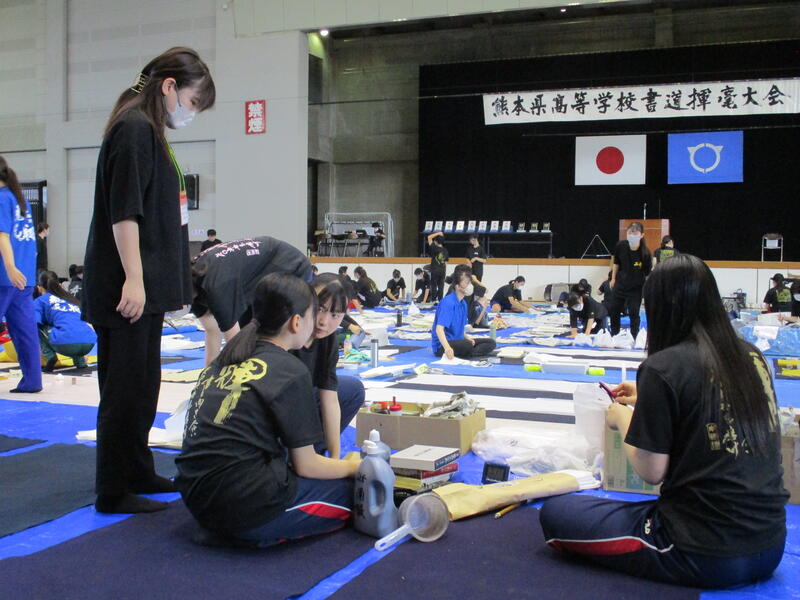 9月13日(土)に宇土市民体育館で開催された県書道揮毫大会に南稜高校書道部員4名が出場しました。当日は県下高校の書道部員250名近くが揃い、体育館の中はこの一年を通して磨き上げてきた日頃の練習の成果を十二分に発揮せんばかりにと熱気に満ちあふれていました。