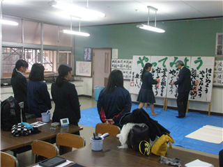 午後からは揮毫大会の予行と並行して午前中に引き続き作品制作及び添削が行なわれ、様々な刺激を受けながら2時間しっかりと作品制作に没頭していました。