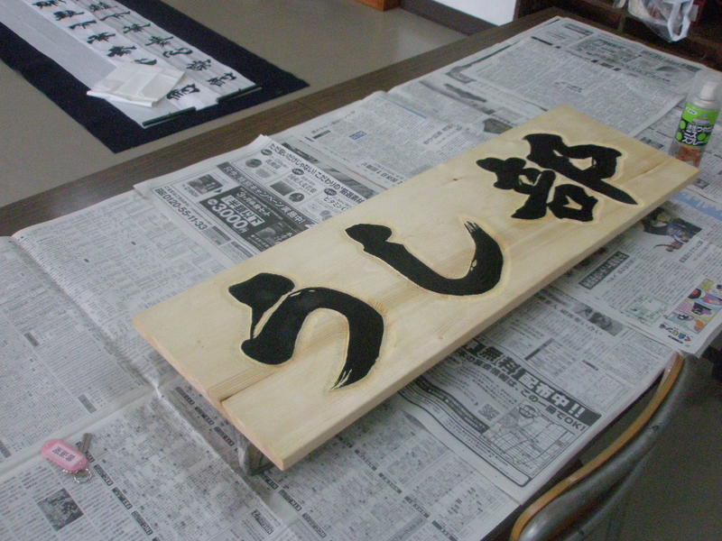 そして、今年度から部に昇格した「うし部」から看板製作の依頼を受けた3年生の書道部員が現在製作中の看板がありました。とても本格的なものに仕上がっています。