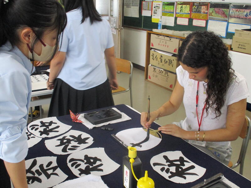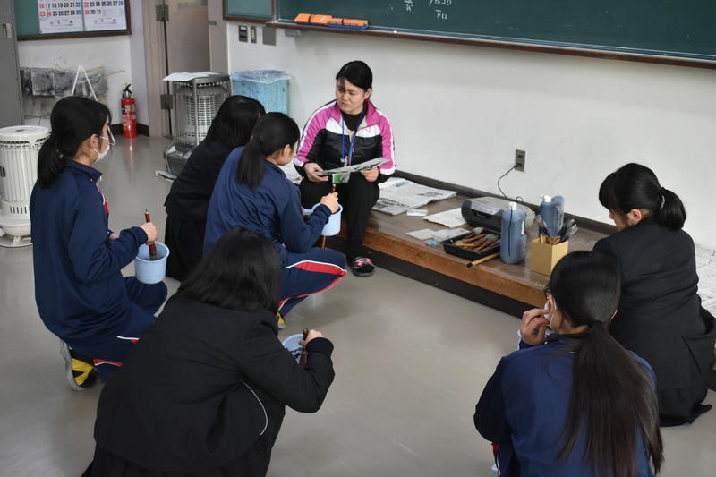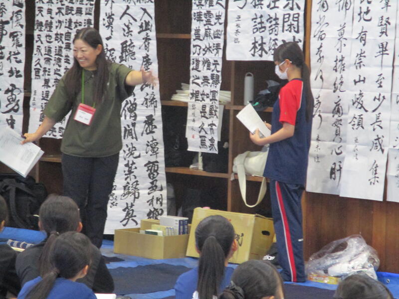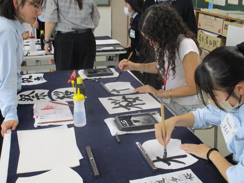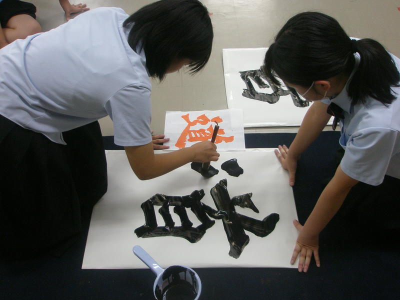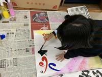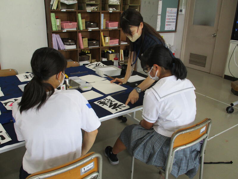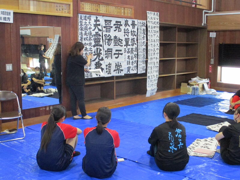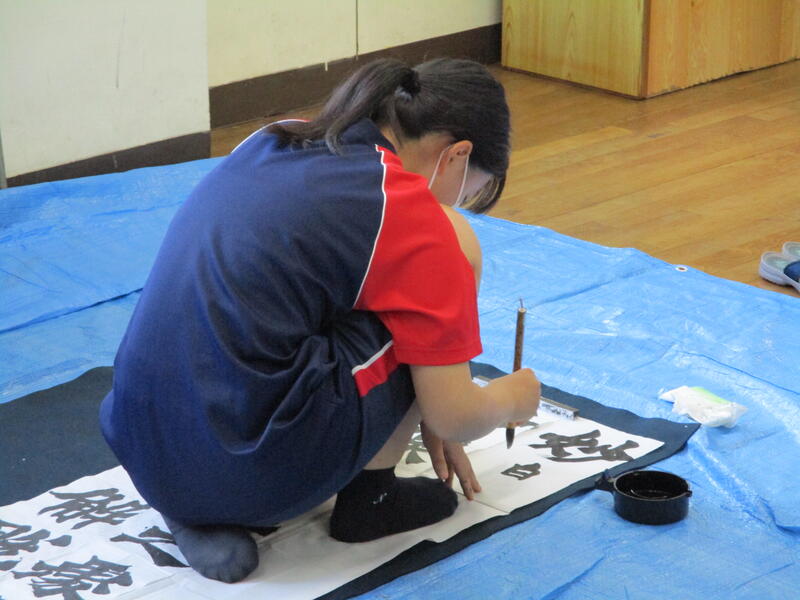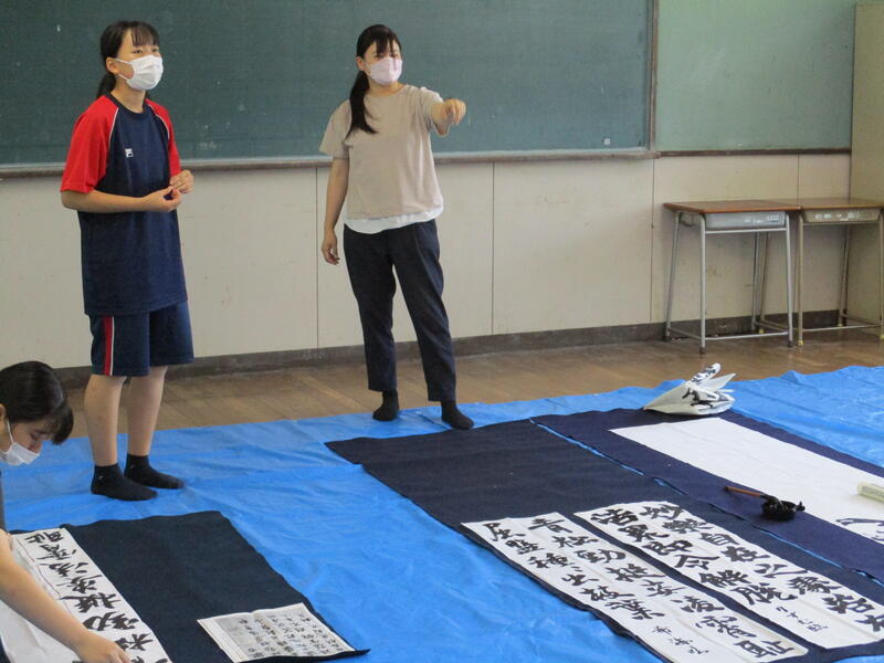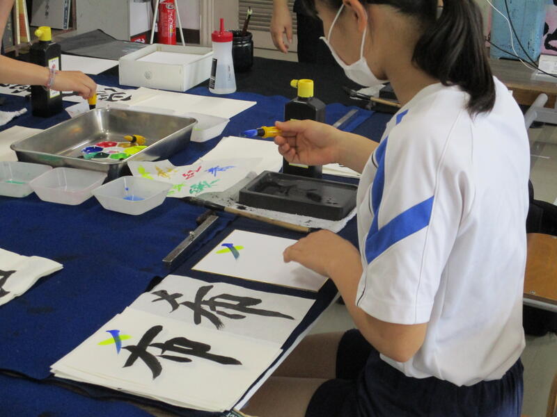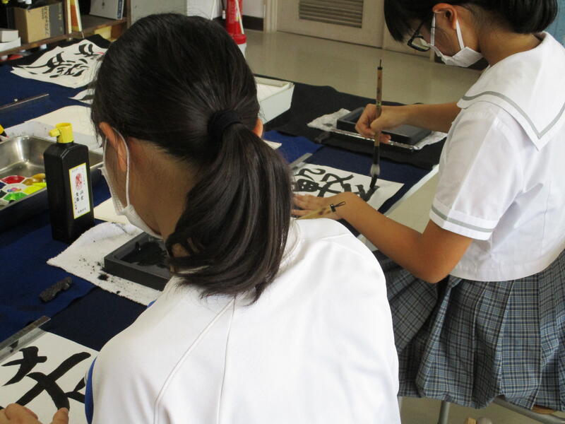 中学校の書写とは少し違う「書道」を意識した筆使いで、それぞれ自由に楽しくのびのびと書いていたのが印象的でした。