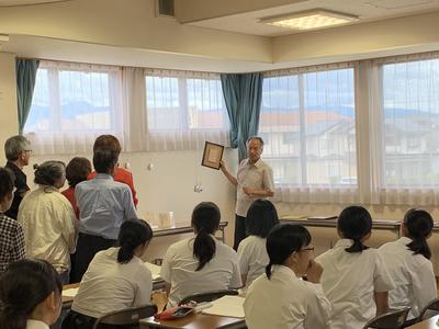 講師として、熊本県書道連盟副理事長、尚絅大学非常勤講師、久多見健堂(本名:健)先生を招き、「仮名」についての講話をしていただきました。