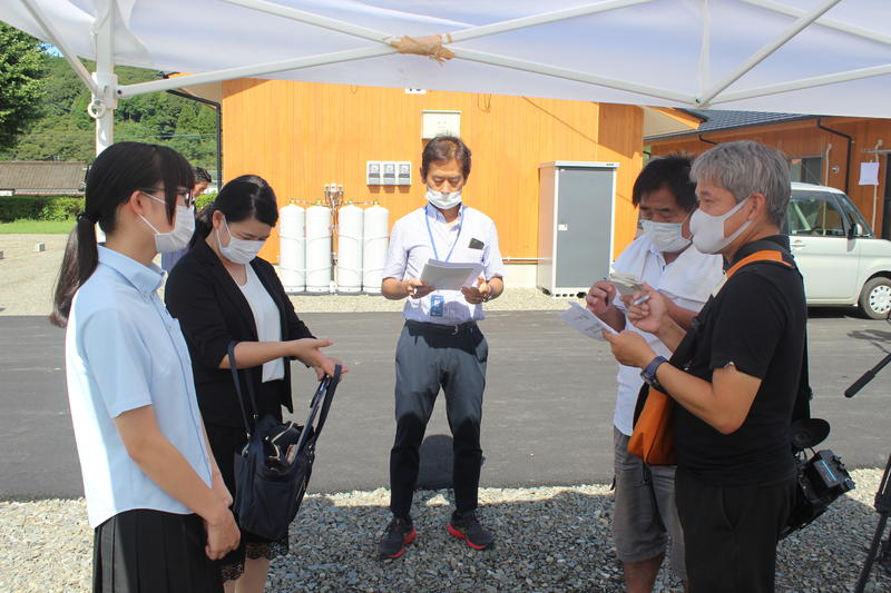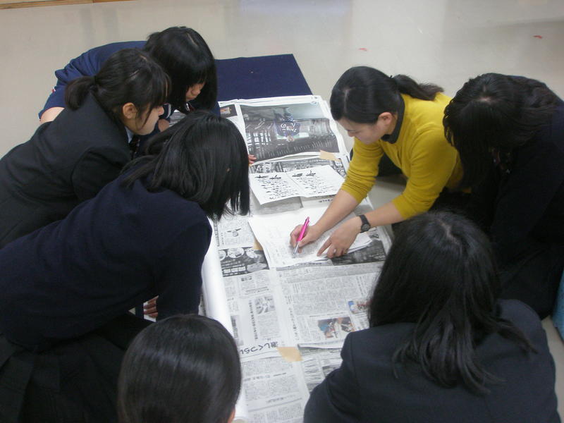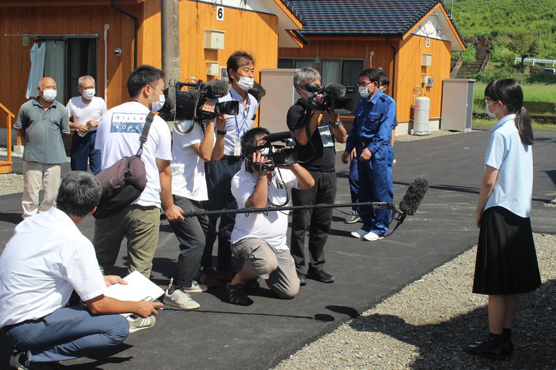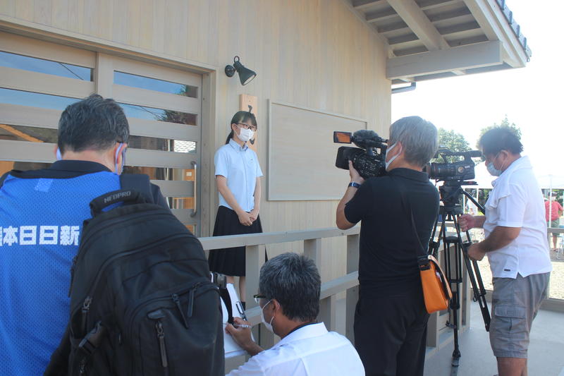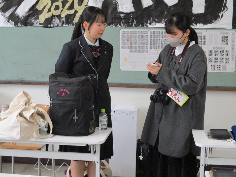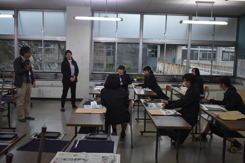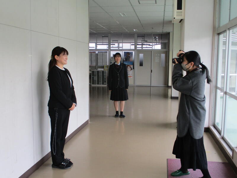 編集部の方による集合写真の撮影後、書道部顧問の土肥先生や部長を務めている石原さんへのインタビューがありました。