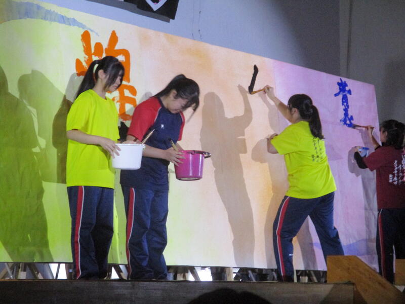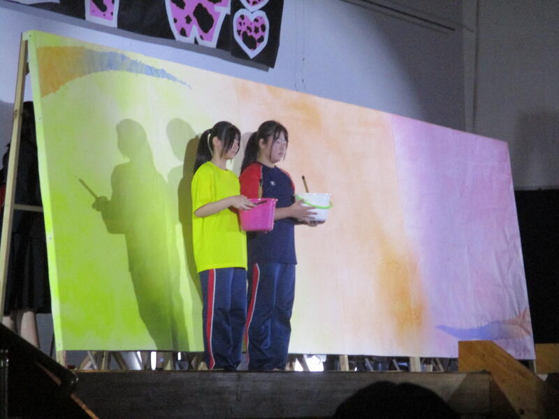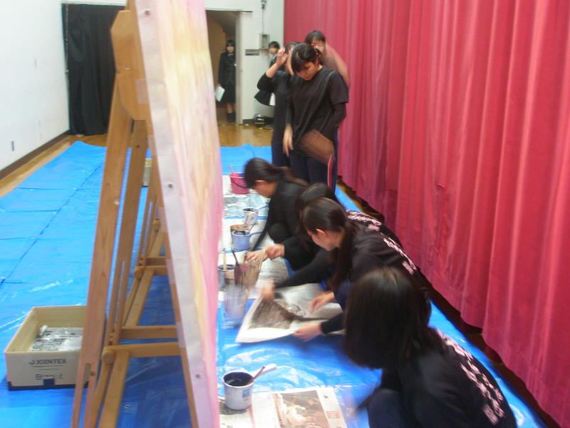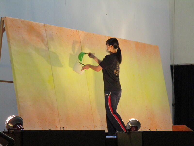 そして本番当日を迎え、出番を控えた書道部は幕の閉じられたステージ内で出番直前まで準備に余念がなく、