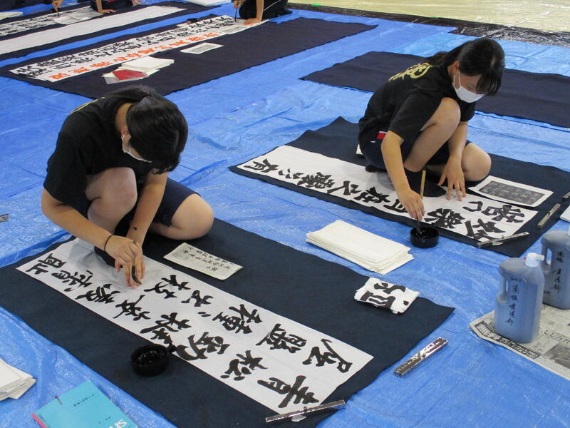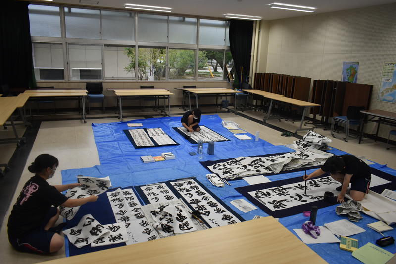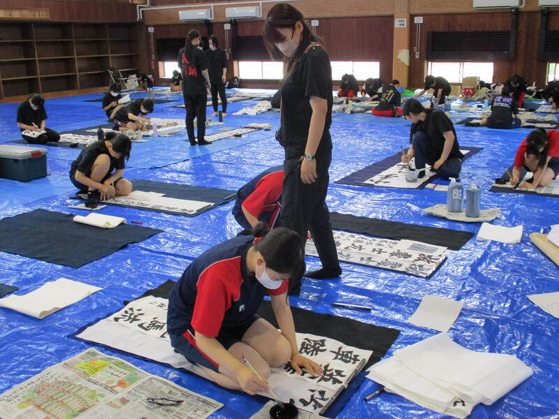 書道部は夏休み中も書技の向上にむけて日々練習に励んでいます。