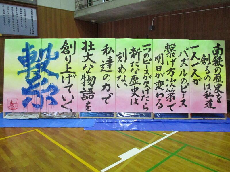 これからは高書展や11月の南稜祭でのステージ発表に向けてさまざまな練習を続けていきます。今後も南稜書道部の活躍にご注目いただき、あたたかい応援のほどを何卒よろしくお願いします。
