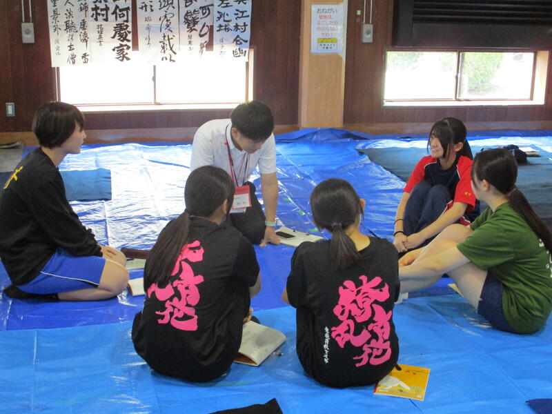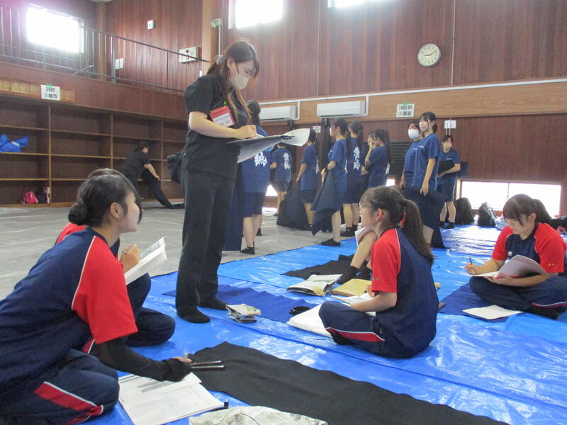 8月6日(水)に宇土市武道場で開催された熊本県高等学校書道「作品制作講習会」に南稜高校書道部員4名が参加しました。この日は県下高校の書道部員70数名ほどが揃い、武道場の中は書技の向上に取組もうとする熱気に包まれていました。