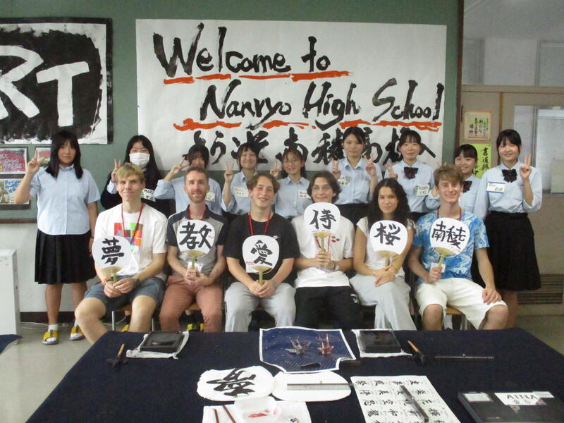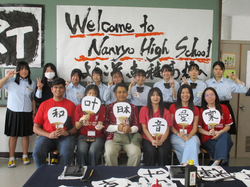 今回、一般社団法人熊本青年会議所より「おもてなしの精神を伝えるべく、書を通じて熊本を海外の皆様に紹介していくことで、熊本の復興と新たな魅力を世界に発信する」という目的で、参加する24チームそれぞれに向けた応援メッセージを、県内の書道部に作成してもらいたいというお話しをいただきました。