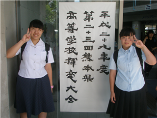 大会に参加して部員一同大いに緊張しましたが、貴重な体験をすることができて充実した時間を過ごすことができました。特に今年入部した1年生は、はじめてこうした雰囲気の中で作品制作に取組むことができて貴重な経験を重ねることが出来たと思います。これからも書技の向上を目指し、今まで以上に部員一同頑張っていく決意を新たにしました。