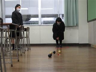 ボッチャは、同じく熊本県障害者スポーツ・文化協会の右松奈緒美様に御指導いただきました。勝つためのコツについても学び、審判もさせていただきました。