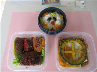 南稜版 おにぎり・弁当コンテストを実施しました。 投稿日時 : 2019/06/20 投稿者5 カテゴリ:ミーティング 6月10日(月)~14日(金)までの一週間、「おにぎり・弁当コンテスト」を実施しました。 工夫をこらしたキャラ弁や普段のお弁当、愛情をこめたおにぎりなど、すてきなおにぎりやお弁当が見られました。 普段自分でお弁当を作らない生徒や、持ってくることのできない生徒も、積極的に参加してくれました。 これを機に、お弁当づくりの楽しさや大変さを知り、継続してくれることを願っています。 生徒・職員を含めた81名の中から、最優秀賞1名・優秀賞2名を決め、表彰式で表彰を行います。 結果をお楽しみに!