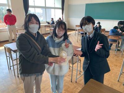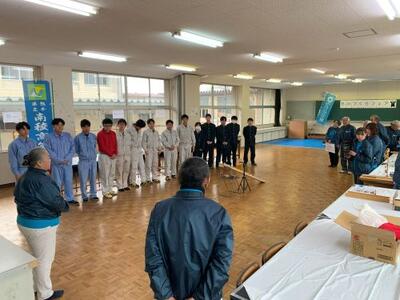 3年生進路激励会を実施しました。メインは模擬面接です。各クラス代表が個人面接と集団面接を行いました。面接官役はキャリアサポーターのほか、3名の育友会の皆様に協力していただきました。育友会からは激励の言葉と、激励品として一勝地駅の入場券(「地に足をつけて一勝を勝ち取れ」という必勝祈願の切符)をいただきました。まずは、16日から始まる就職試験で一勝を積み重ねてほしいと願っています。