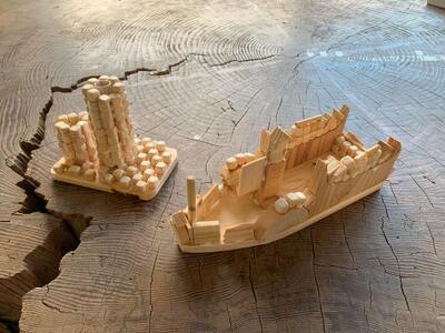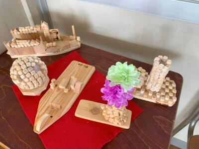 これが樹皮を剥いだ枝です。海や川にある立木のようです。これで何を作るか、中学生の皆さん。考えてみてくださいね♪。