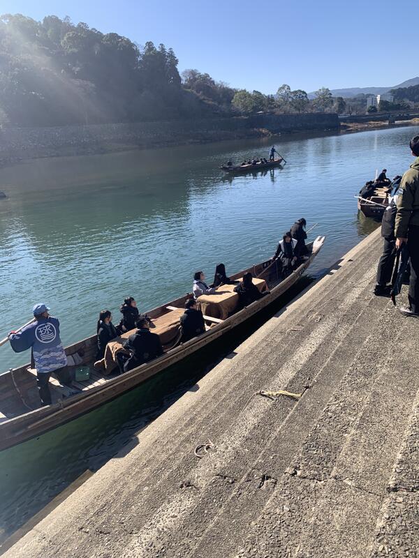 12月22日、3年生は球磨川くだり特別体験に参加しました。水量が少ないため、人吉城跡の近くを遊覧する「梅花の渡し」でした。朝霧の残る水面をこたつ船が進む姿はとても風情があり、古里の観光資源を満喫することができました。また人吉城歴史館を見学して学びを深めました。その後、人吉市内散策を楽しみ、自由にカフェやグルメを巡って青井阿蘇神社を参拝するプチ旅行を楽しみました。