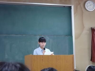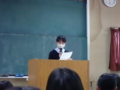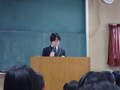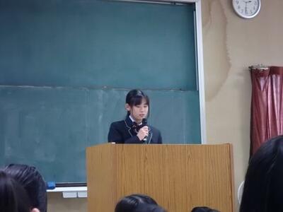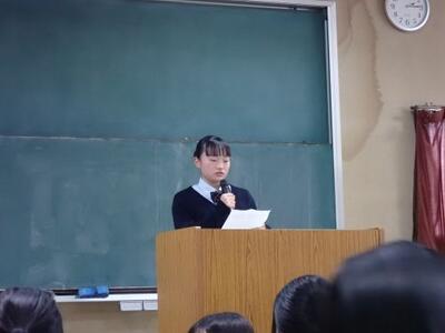 【生活経営科】意見発表会、頑張りました! 投稿日時 : 16:14 投稿者5 生活経営科の意見発表予選会がありました。各学年代表3名が発表してくれました。「農業」「環境」「地域資源」「食料」など様々なテーマがありましたが、一番多かったテーマは「命」でした。小動物や養鶏の授業では、日々命に向きあっています。「育てていた、子ヤギの死…」「ニワトリのと殺・解体実習をとおして感じたこと…」これらの活動は、どの学校でもできることではありません。発表をとおして、生徒たちの成長を感じました。