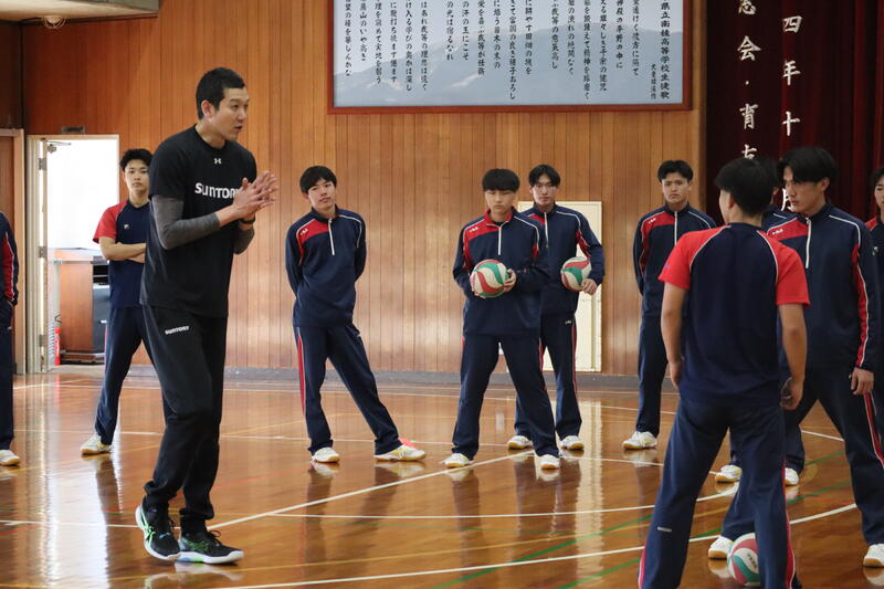 アスリート派遣事業としてバレーボール元日本代表、山村宏太さんが来校され、スポーツコース1・2年生に特別授業をしていただきました。