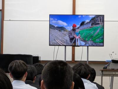 人吉・球磨地域の建設業組合の方が来られて、建築や土木について話をしてくれました。