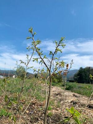 総合農業科環境コースのクヌギ苗、小さな葉が芽吹きだしました。