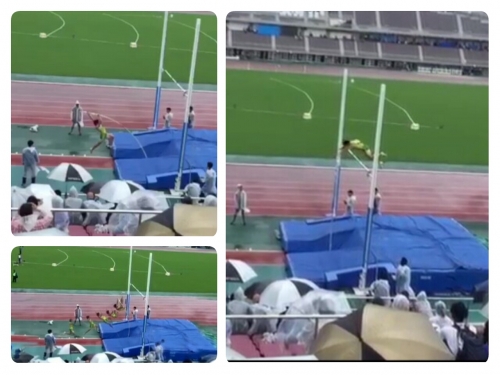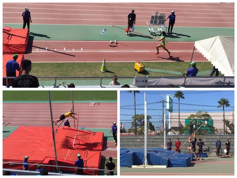 大会2日目、女子棒高跳びが強風の中実施されました。