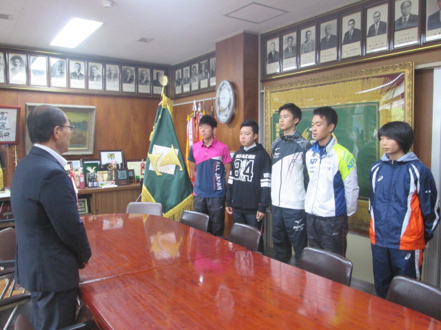 26日(土)に開催される熊本県高校駅伝のため、出発の挨拶に校長室へ訪問しました。