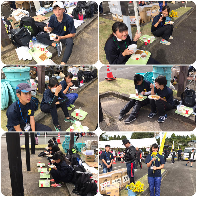 陸上部以外の生徒も参加し、スタート前の選手整備、昼食の配膳・片付けなど奮闘していました。