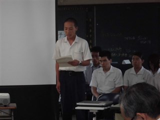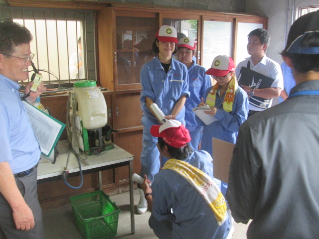 NPO法人アジアGAP総合研究所 特任指導員の寺田様から生徒12名に対し、ご指導を頂き、それを聴講する形式で行われた。九州農政局の方々、熊本県農林水産部生産経営局農業技術課の渡邉参事や県南広域本部球磨地域振興局農林水産部農業普及・振興課の方々。農業関係高校の先生方12名。合計41名が参加。農場の実地指導の後、再び、会議室でまとめを行い、生徒からの質問にも答えていただいた。