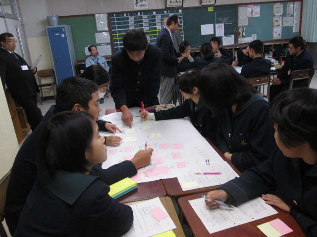 考えさせる視点、教師に発言を50分間の8割から5割まで少なくし、生徒の思考を深めてほしい。
