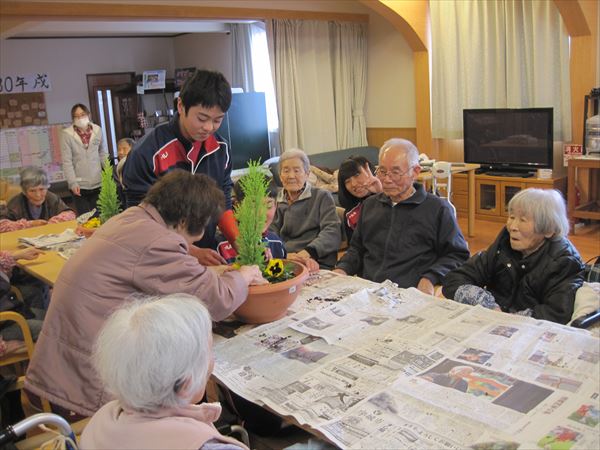 ・ディサービス事業所における寄せ植え交流 【SPH(15)】(2018/1/12)