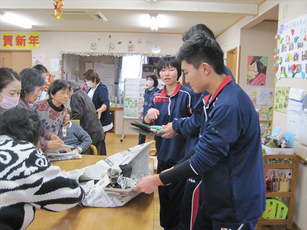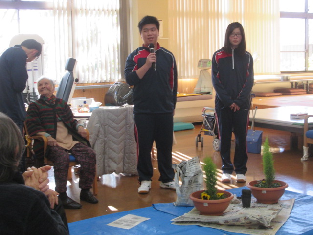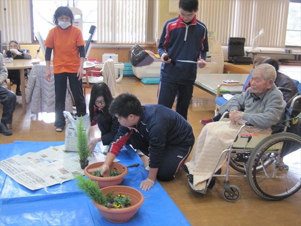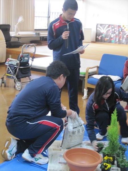 1月12日(金)1年普通科福祉コースの生徒が、「ディサービス事業所における寄せ植え交流」を行いました。園芸福祉・園芸療法学習の一環として、あさぎり町内のディサービス事業所で、寄せ植えを体験しました。SPH(15)の取組の一環でもあります。