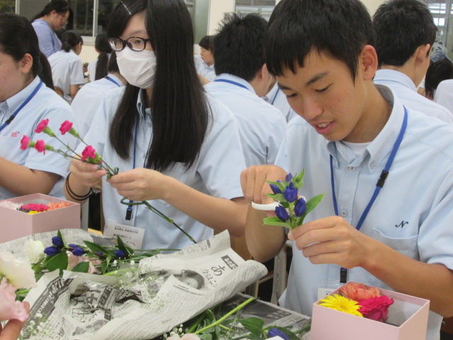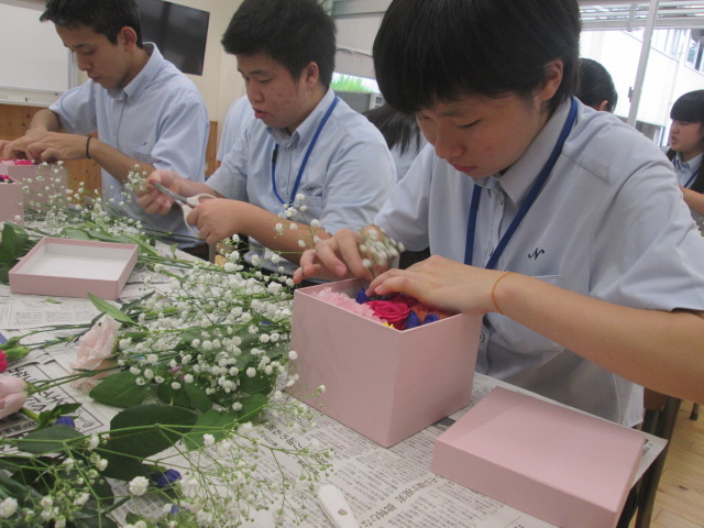 9月14日(金)1、2年普通科福祉コースの生徒29名を対象に、フラワーBOX出張教室が開かれました。SPH(15)園芸福祉の取組の一環。