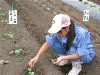 生活経営科の1年生が大根、白菜、ブロッコリーの栽培、管理について学んでいます。
