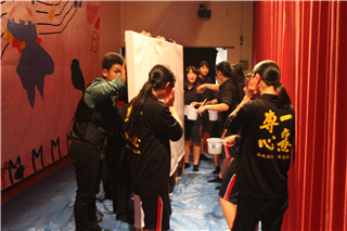 そして本番当日を迎え、出番を控えた書道部は幕の閉じられたステージ内で出番直前まで準備に余念がなく、