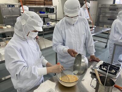 総合農業科2年生が食品科学科で製造実習に取組んでいます本日はマドレーヌの製造を行いました
