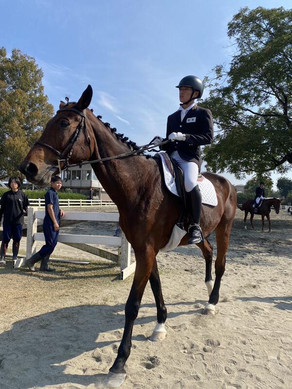 今回の大会では小障害飛越競技(90)と馬場馬術競技(3科目A)に出場しました。障害飛越競技ではあまり良い走行をすることが出来なかったけど、馬場馬術競技では8位に入賞することができました。来年の全国高校生自馬選手権大会では馬場馬術競技で姉の6位入賞を越せるよう、そして障害飛越競技ではピックウィジョン号で完走できるように今後の部活動の管理や練習を頑張ります。
