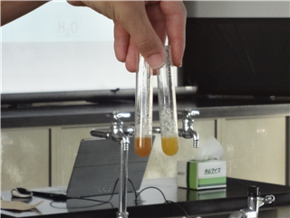 左の試験管には蒸留水、右にはアスコルビン酸(V.C)を入れました!