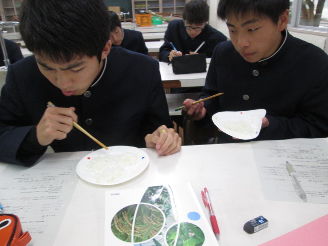 2年生産科学科「南稜米の食味官能検査」(多田・丸尾:深水委員)