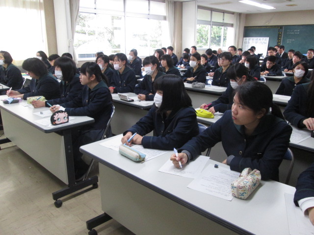 体験参加型の講演で、発表力、質問力が大切なことなど興味深いお話をいただき、生徒も楽しんで拝聴しました。